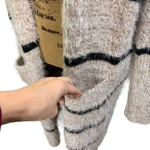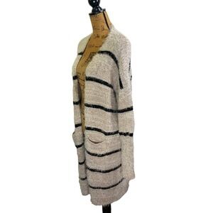 HYFVE Beige & Black Stripe Eyelash Knit Cardigan Sweater