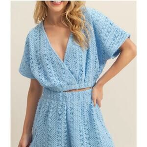 HYFVE Blue Set-Vneck Crochet Crop Top And Shorts Set