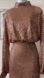 HYFVE Brown Bronze Sequin Open Back Long Sleeve Holiday Cocktail Mini Dress M