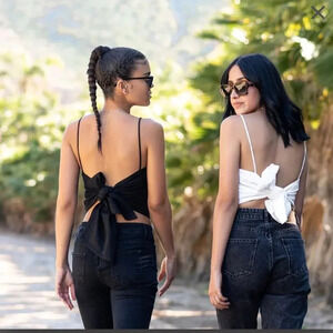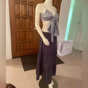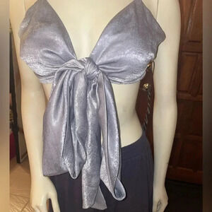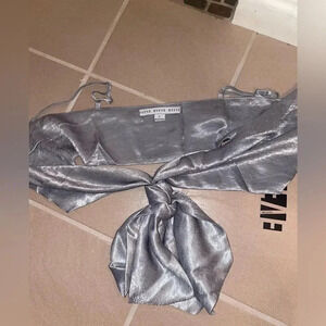 Beautiful polyester with a satin feel cropped wrap tank in shimmery silver. Wraps many ways 100% polyester but looks and feels like satin