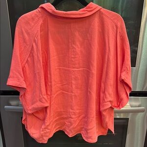 Stylish coral blouse with button-up front. Features a chest pocket and relaxed fit. Perfect for casual wear.