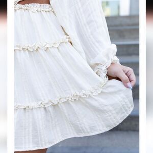 HYFVE Cottagecore Boho Peasant Dress Medium Beige Ruffle Long Sleeve Mini Dress