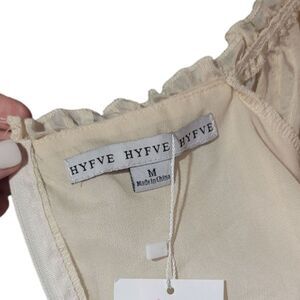 HYFVE Cottagecore Boho Peasant Dress Women’s Medium Beige Ruffle Long Sleeve Mini Dress NEW