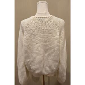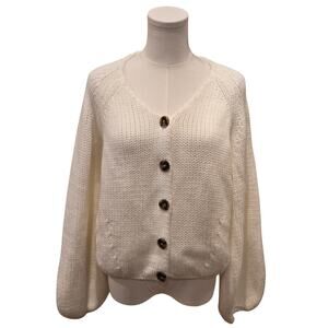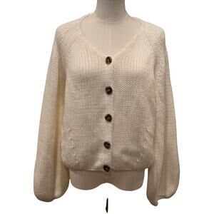 HYFVE Cream Button V-Neck Balloon Sleeve Open Knit Cardigan Sweater Womens Large
