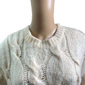Tags: Sweater, Cream, Womens, CrewNeck, CableKnit, Medium, LongSleeve, HYFVE, WinterFashion