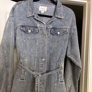 Darling denim jacket with a tie waist. 100% cotton denim. Light blue. Silver hardware. Machine washable. Sz. L - NWT