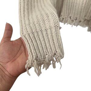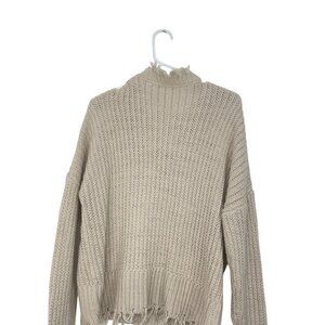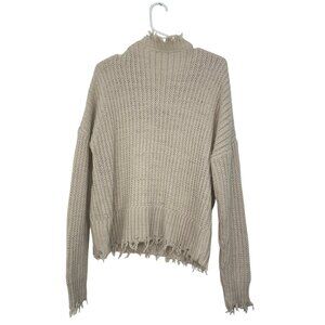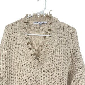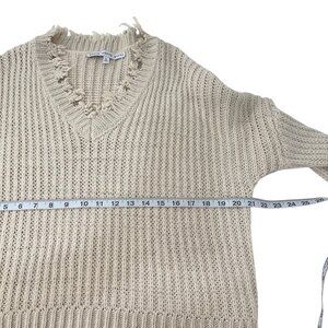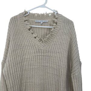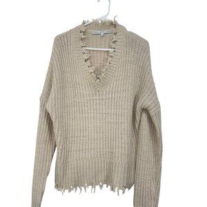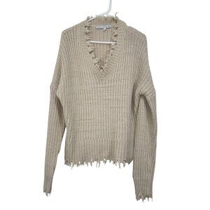 HYFVE Distressed Beige Distressed V-Neck Knit Sweater - Womens Size L