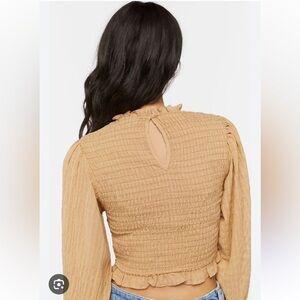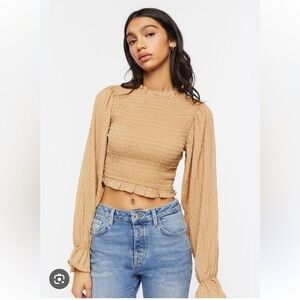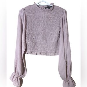 HYFVE Forever 21 Smocked Peasant Sleeve Woven Cropped Ruffle Top Mauve