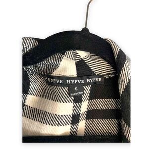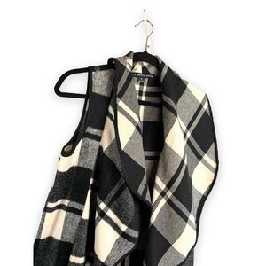 Oversized, black and white plaid, fuzzy, soft, and Flowy.