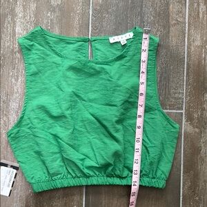 Chic green tank top with a cropped fit. Ideal for casual outings. Lightweight and stylish. Comes from a smoke free home