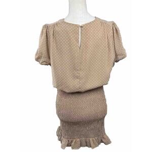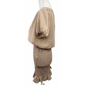 HYFVE HYFVE HYFVE Peach/Tan Polka Dot Bodycon Spring Dress Ruched Size Large