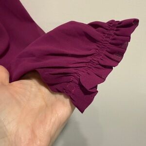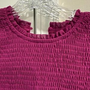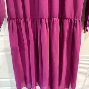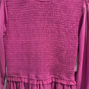This is a new with tags Hyve dress size medium magenta with a smocked bodice, tiered long-sleeve. It's fully lined and midi-length.