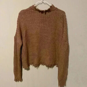 HYFVE Mauve Distressed Crop Knit Sweater Size Large Women’s Comfy