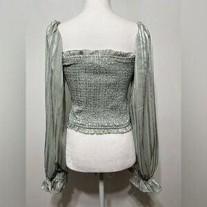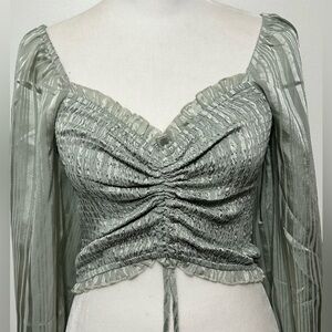 HYFVE Metallic Smocked Boho Peasant Puff Sleeve Cinched Festival Crop Top