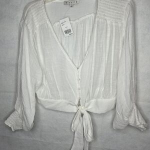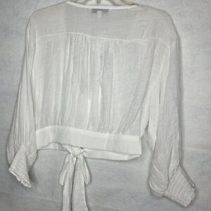 HYFVE NWT White Puff Sleeve Cropped Sheer Blouse with Tie Front Size Large