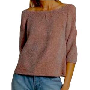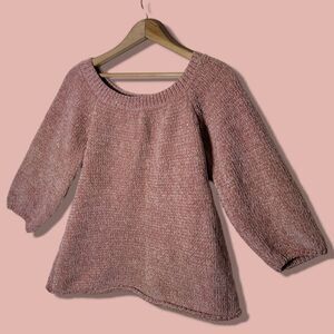 HYFVE Off The Shoulder Chenille Cropped Sleeve Cozy Blush Sweater