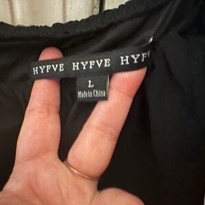 - HYFVE Off the Shoulder Ruffle Black Wide Leg Romper Pantsuit