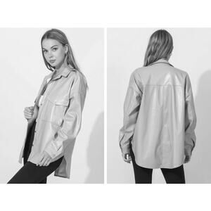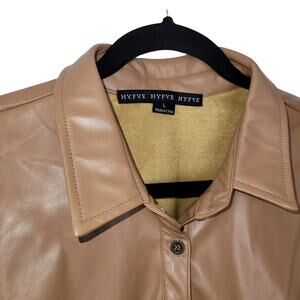 HYFVE Oversized Vegan Leather Button Up Long Sleeve Brown Jacket Women Sz L