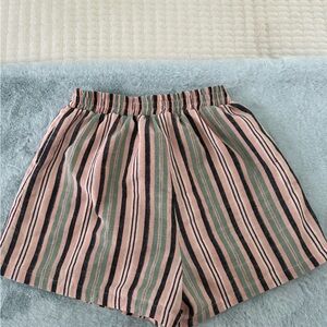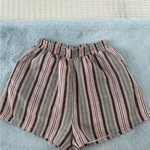 Chic high waist shorts with pink and green stripes. Ideal for casual wear.