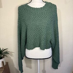HYFVE Popcorn Stitch Cropped Sweater Green Textured