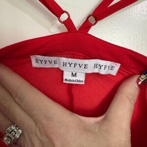 This vibrant red top from HYFVE features an asymmetrical design and a backless style, perfect for making a bold statement. The top offers a chic and modern look, ideal for any occasion where you want to stand out.