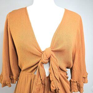 HYFVE Rust Orange Brown Ruffle Bell Sleeve Front Knot Romper