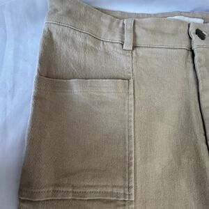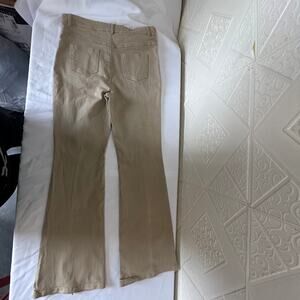 HYFVE Size Large tan slight bell bottom pants stretch see slit on bottoms decor
