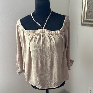 HYFVE Sz L Off the shoulder Tan airy crinkle top blouse
