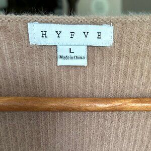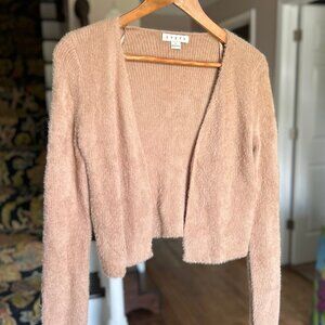 HYFVE Tan Teddy Bear Knit Fuzzy Open Cardigan Cropped Sweater Womens Size Large