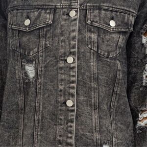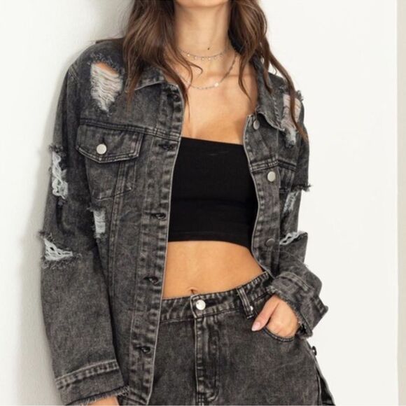edgy acid wash finish, ripped details, and a relaxed oversized boyfriend fit that channels 90s street style and grungecore vibes. Perfect for layering, this destroyed black jean jacket pairs effortlessly with casual cool girl outfits, Y2K revival looks, or urban streetwear ensembles. Baddie The vintage-inspired wash and lightly frayed edges give it a soft grunge, indie sleaze appeal, while the longline cut adds a model-off-duty, retro rocker chic feel. Ideal for festival fashion, minimalist edgy styling, or even a dark coastal cowgirl twist, this washed black denim piece is a versatile staple for any fashion-forward wardrobe.