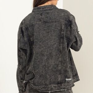 HYFVE Tess Acid Washed Distressed Denim Jacket in Black Denim 100% Cotton Size S
