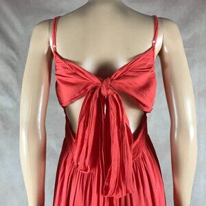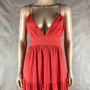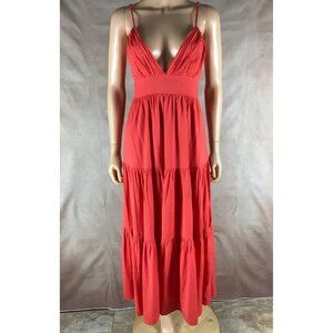 HYFVE V-neck Plunging Tiered Coral Orange Maxi Dress MEDIUM