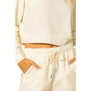 HYFVE WOMENS WHITE WHIP CREAM SOFT LONG SLEEVE CROP TOP / MATCHING LOUNGE SHORTS SZ: S/M/L