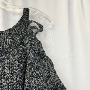 HYFVE Womens Black White Knitted Cold Shoulder Pullover Sweater Size Large
