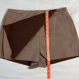HYFVE Women's Large Tan Faux Leather Skort Tan Zip Closure Short