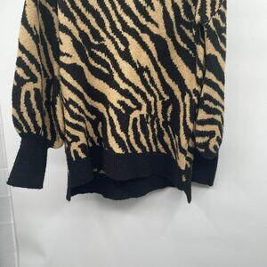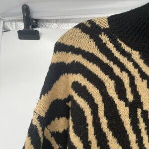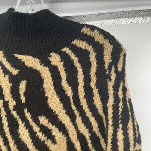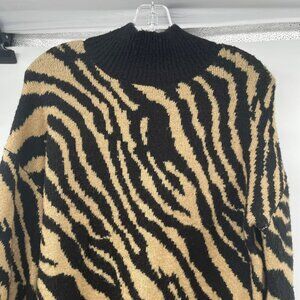 HYFVE Womens Zebra Print Pullover Sweater Mock Neck Black/Tan Size Small