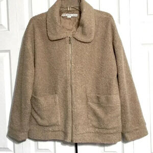 Polyester lined jacket - front pockets zipper front. Collar. Nubby material. I don’t dry clean my price reflects that. Approximate Measurements Laying flat: pit to pit 23” - shoulder to hem 26” - sleeves 25”. Preowned good used condition please check all pictures.(TP83024)