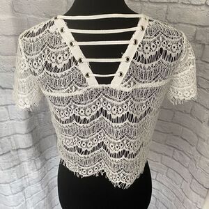 HYFVE women S lace crop top w/front lining & back straps cream color