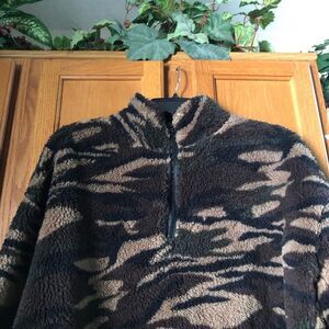 HYFVE 1/2 Zip Camouflage Teddy Crop Jacket - M