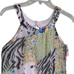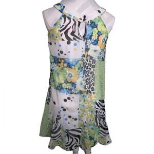 HYPE Halter Fit Flare White Green Zebra Floral Dots Yelow Floral Dress
