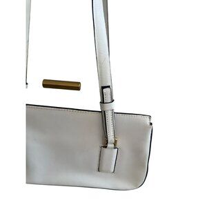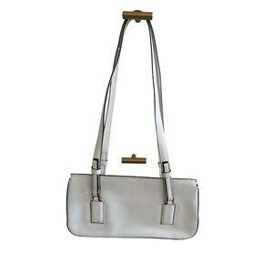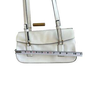 Elevate your style with this Y2K vintage white leather shoulder bag. Featuring a chic double strap design, it's perfect for any fashion-forward individual seeking a timeless accessory to complement their wardrobe. Good condition with some wear as shown.