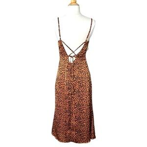 HYPED UNICORN Leopard Print MIDI Slip Dress Low Back Mob Wife Animal Print, S