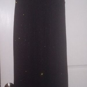 This Haani elegant black maxi dress is designed for a sophisticated cocktail night out. Featuring a fitted bodice and a flowing skirt, it showcases a striking rhinestone adorned neck with a clean horizontal transition. The sleeveless style and minimalist aesthetic add a touch of modern elegance. Pre-owned in good condition.
