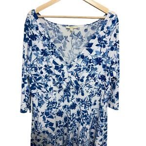 Haani Floral Faux Wrap Dress Blue and Cream Size 3X