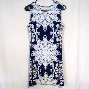 Haani Petite Navy White Mandala Print Shift Dress Size Petite Medium