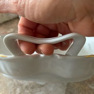 Haas & Czjzek Gorgeous porcelain w/gold trim chips & dip dish with lid, made in Czech Republic, brand new, purchased in Prague, size from handle to handle about 13 inches.