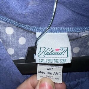 Top: Button-front, 3/4 sleeves, polka dot pattern