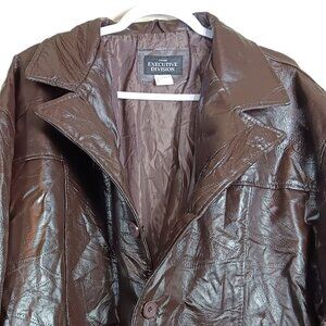 Haband Executive Division Leather Jacket Mens 4X Brown Patchwork Button 70s 80s