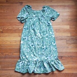 Haband Floral Green Dress with Ruffle Hem Size Small Vtg