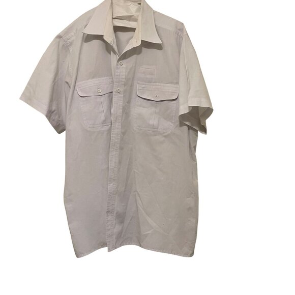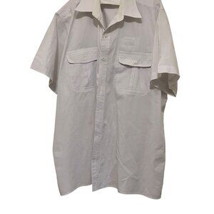 Haband Travelers Mens White Short Sleeve Button Down Shirt LG Dual Chest Pockets